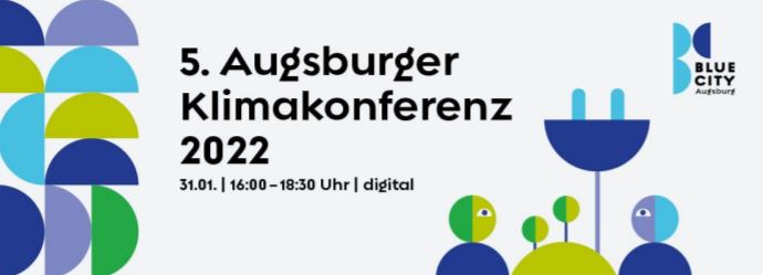 Die Klimakonferenz der Stadt Augsburg findet traditionell jährlich Anfang Dezember statt und behandelt jeweils aktuelle lokale Themen. Sie richtet sich gleichermaßen an Akteurinnen und Akteure aus dem Bereich Klimaschutz sowie an interessierte Bürgerinnen und Bürger. Der nächste Termin war ursprünglich für den 01.12.2021 geplant. Aufgrund von Terminkollisionen wurde die Konferenz jedoch verschoben und findet nun am 31.01.2022, von 16:00 Uhr bis 18:30 Uhr und wieder im Online-Format statt.
