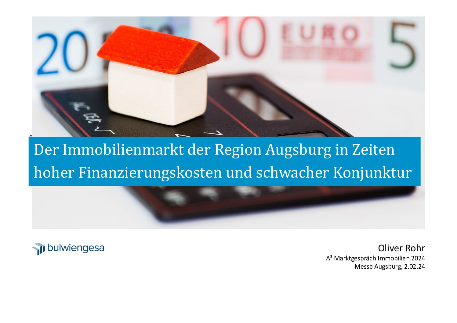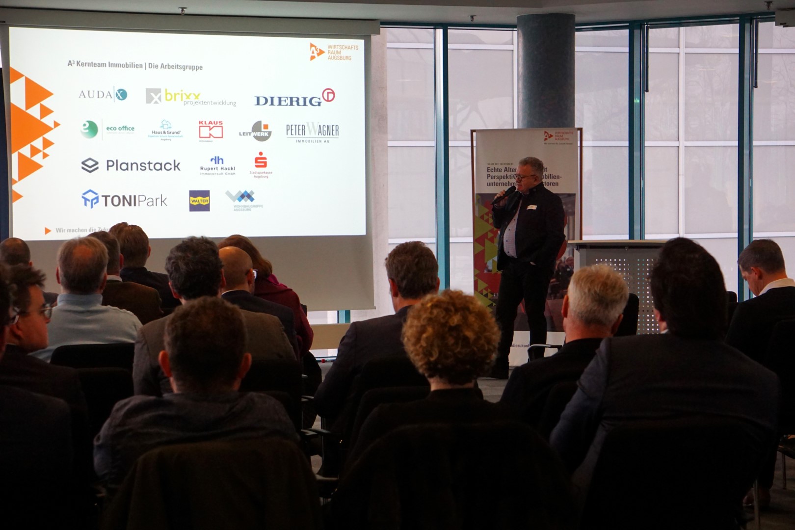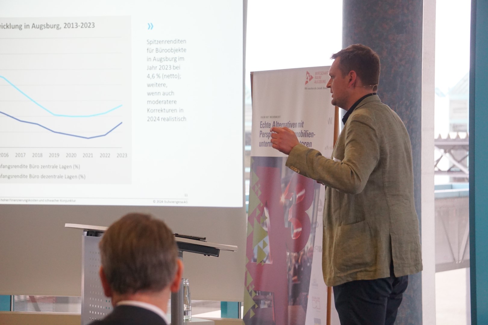 Folgende Immobilienexperten gaben ihre Einschätzungen zum Marktgeschehen und einen Ausblick auf das neue Jahr. Die Teilnehmer gewannen dabei aktuelle Einblicke in den regionalen Immobilienmarkt Wirtschaftsraum Augsburg rund um alle Immobiliensegmente und diskutierten mit den Referenten. Die Keynote seitens der bulwiengesa AG rundete das Fachevent ab, zu dem Thema: Navigieren durch Herausforderungen - Analyse des Immobilienmarktes der Region Augsburg in Zeiten hoher Finanzierungskonditionen und schwacher Konjunktur.