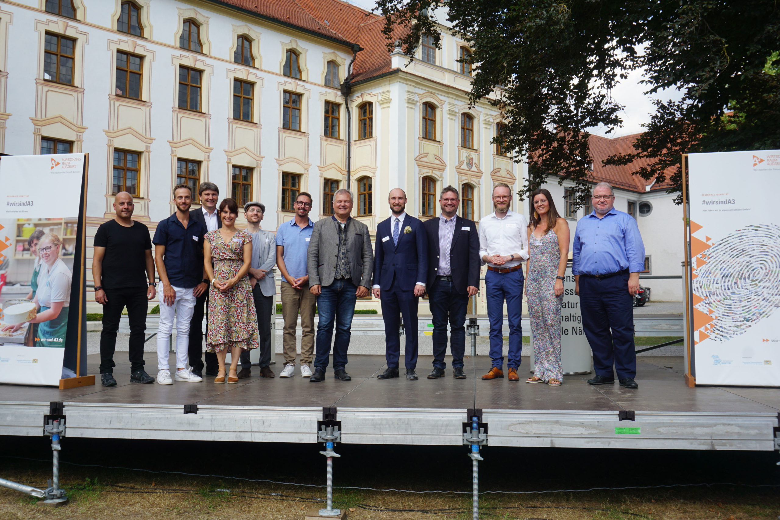 Vertreter*Innen aus Politik und Wirtschaft, Projektpartner*Innen, Studierende, Familienmitglieder – es war eine vielfältige Gästeschar, die am 27.07.2022 der Einladung der Regio Augsburg Wirtschaft GmbH zum Event Schlaglichter regionaler Identität „Wir sind A³“ folgte. Nach einleitenden Worten durch den Regio-Geschäftsführer Andreas Thiel, begrüßten der Bürgermeister der Marktgemeinde Thierhaupten, Anton Brugger sowie der stellv. Landrat des Landkreises Augsburg, Dr. Michael Higl, herzlich die Gäste. Moritz Schwob vom Bayerischen Staatsministerium für Finanzen und der Heimat betonte, warum die Stärkung regionaler Identität eine so hohe Bedeutung hat. Die einzelnen Stärken einer jeden Region hervorzuheben, wie beispielsweise den Naturraum oder kulinarische Besonderheiten, kann helfen sich gegenüber anderen zu positionieren und gleichzeitig eine Stärkung nach Innen zu erzielen.