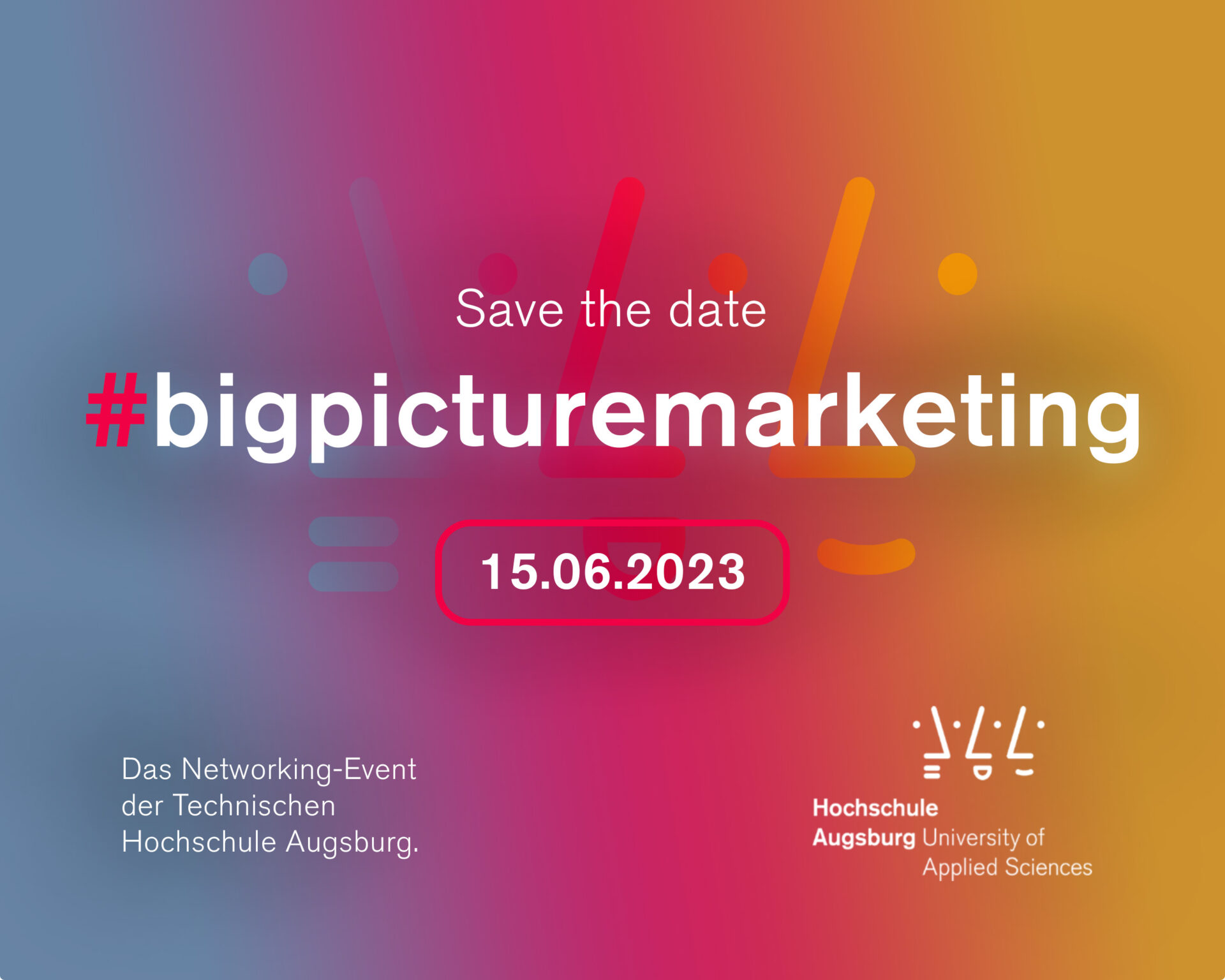 Das Networking-Event der Technischen Hochschule Augsburg ist eine studentisch organisierte Veranstaltung, die sich an Unternehmen, Professionals und Marketing-Fans aus der Region wendet. #bigpicturemarketing bietet spannende Vorträge namhafter Speaker sowie Master-Showcases von Studierenden aus den Bereichen Luxury Brands, Energiewende und Weiterbildung. Ebenfalls Teil des Programms ist eine Podiumsdiskussion zu aktuellen Zukunfts- und Trendthemen aus der Marketing-Welt sowie die einzigartige Gelegenheit zum direkten Austausch mit Master-StudentInnen und AbsolventInnen der Hochschule.
