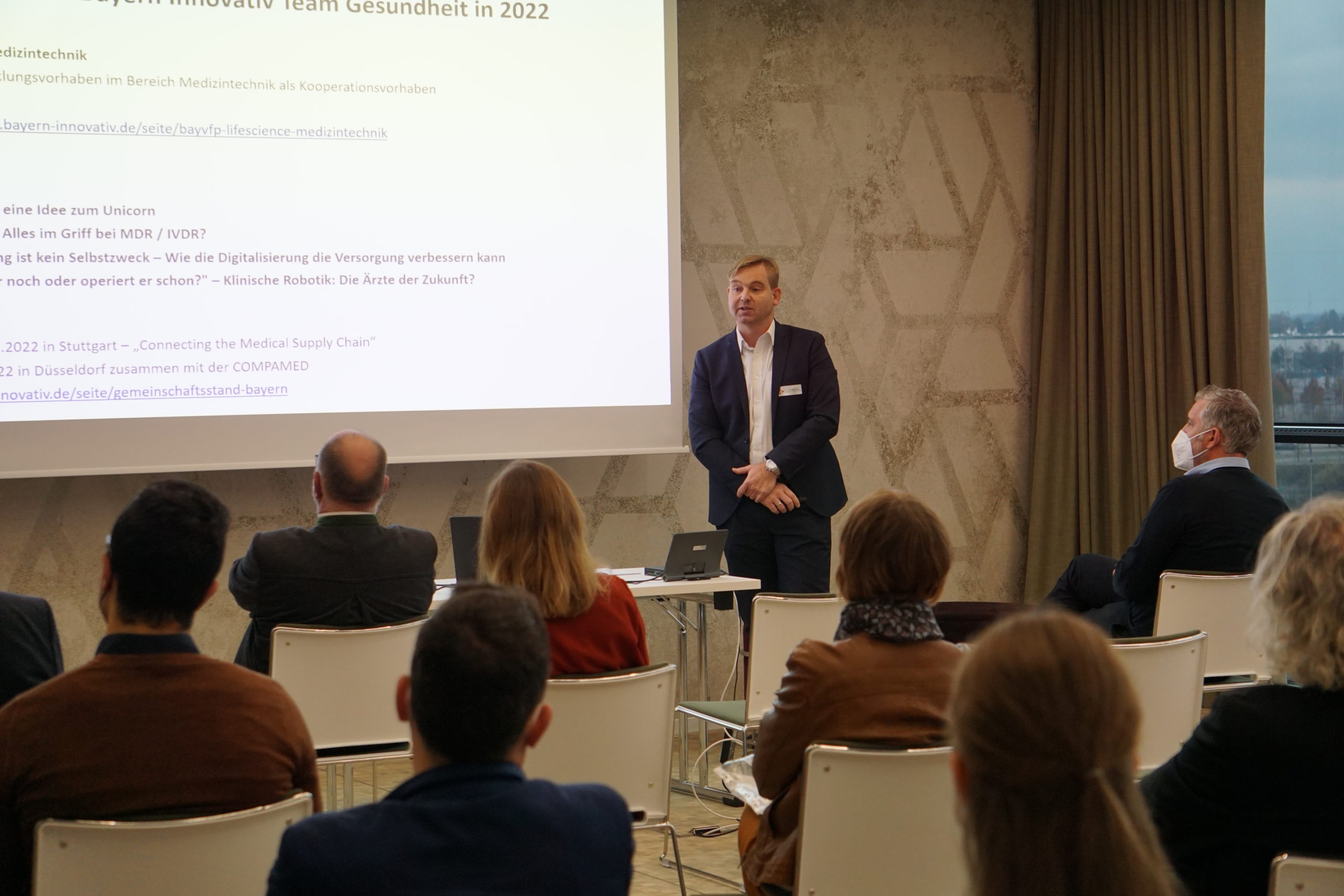 „Wir haben in Bayern einen guten Innovationsstandort in der Medizintechnik“ attestierte Dr. Jörg Traub, Leiter Gesundheit bei Bayern Innovativ (Bayerische Gesellschaft für Innovation und Wissenstransfer mbH), zu Beginn der Veranstaltung. Der gesamte Bereich der industriellen Gesundheitswirtschaft entwickelte sich in den vergangenen Jahren stärker als die Gesamtwirtschaft, in Zahlen bedeutet das ein Plus von fast 6% bei der Bruttowertschöpfung zwischen 2009 und 2018.
