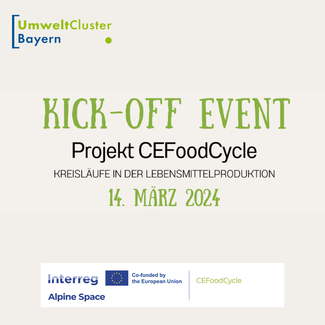 Das Umweltcluster lädt Sie ganz herzlich zum Kick-Off Event „Projekt CEFoodCycle – Kreisläufe in der Lebensmittelproduktion“ ein. Die Veranstaltung findet am 14.03.2024 im Grandhotel Cosmopolis statt. Die Adresse lautet: Springergässchen 5 in 86152 Augsburg.