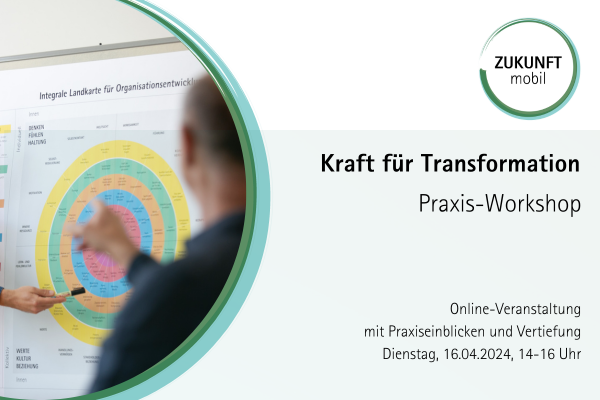 Zielgruppe: dieser kostenfreie Online-Workshop richtet sich an Teilnehmende der „Kraft für Transformation“-Angebote des Weiterbildungsverbunds ZUKUNFTmobil und darüber hinaus an Interessierte Arbeitnehmer und Arbeitgeber bei denen Veränderungsprozesse im Unternehmen anstehen.