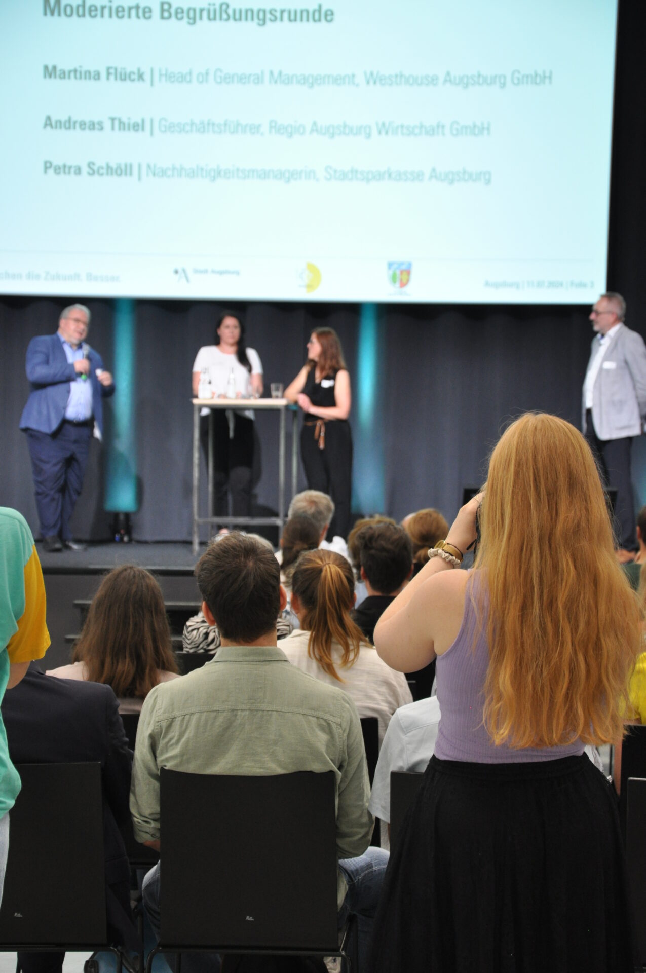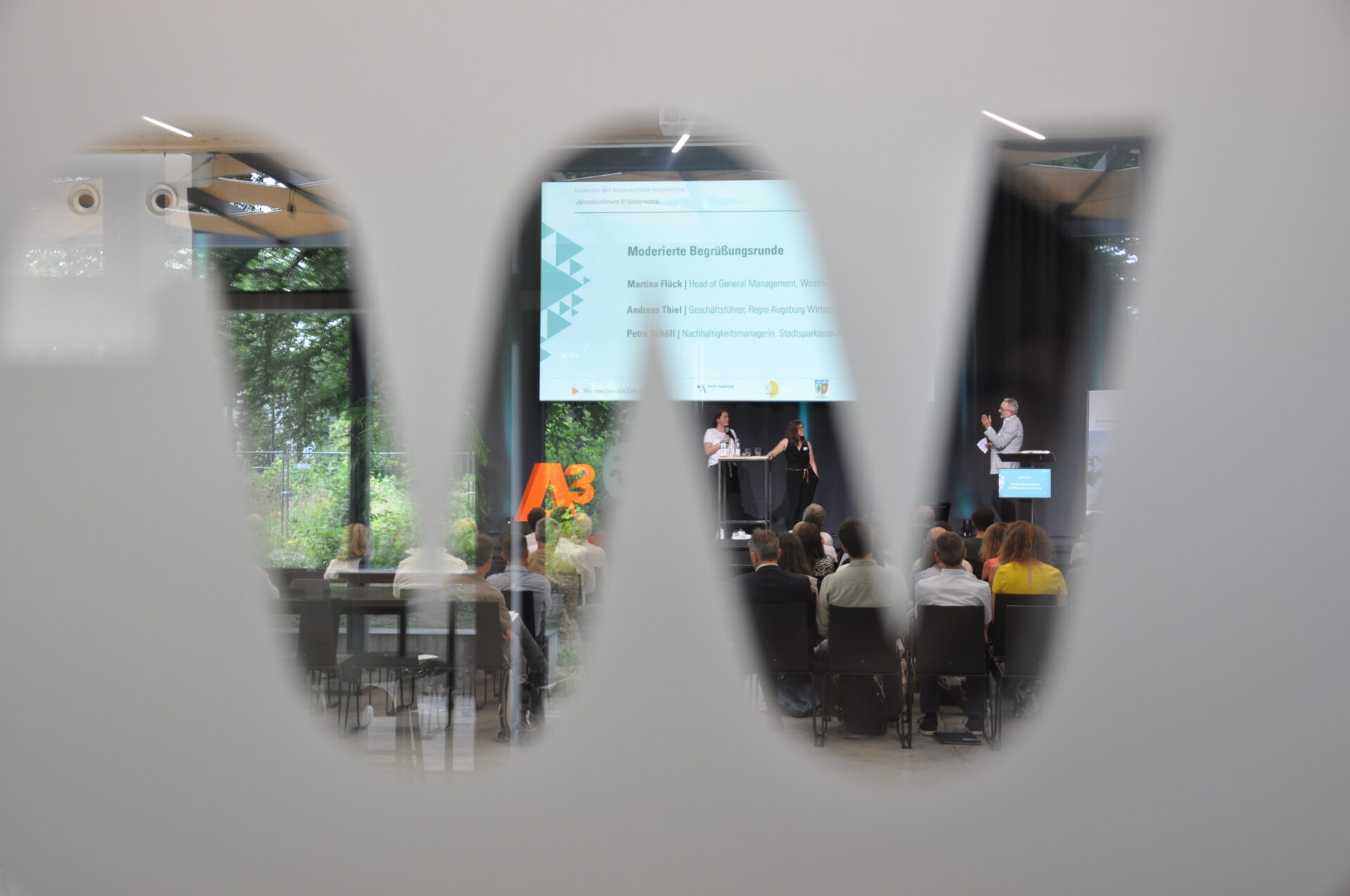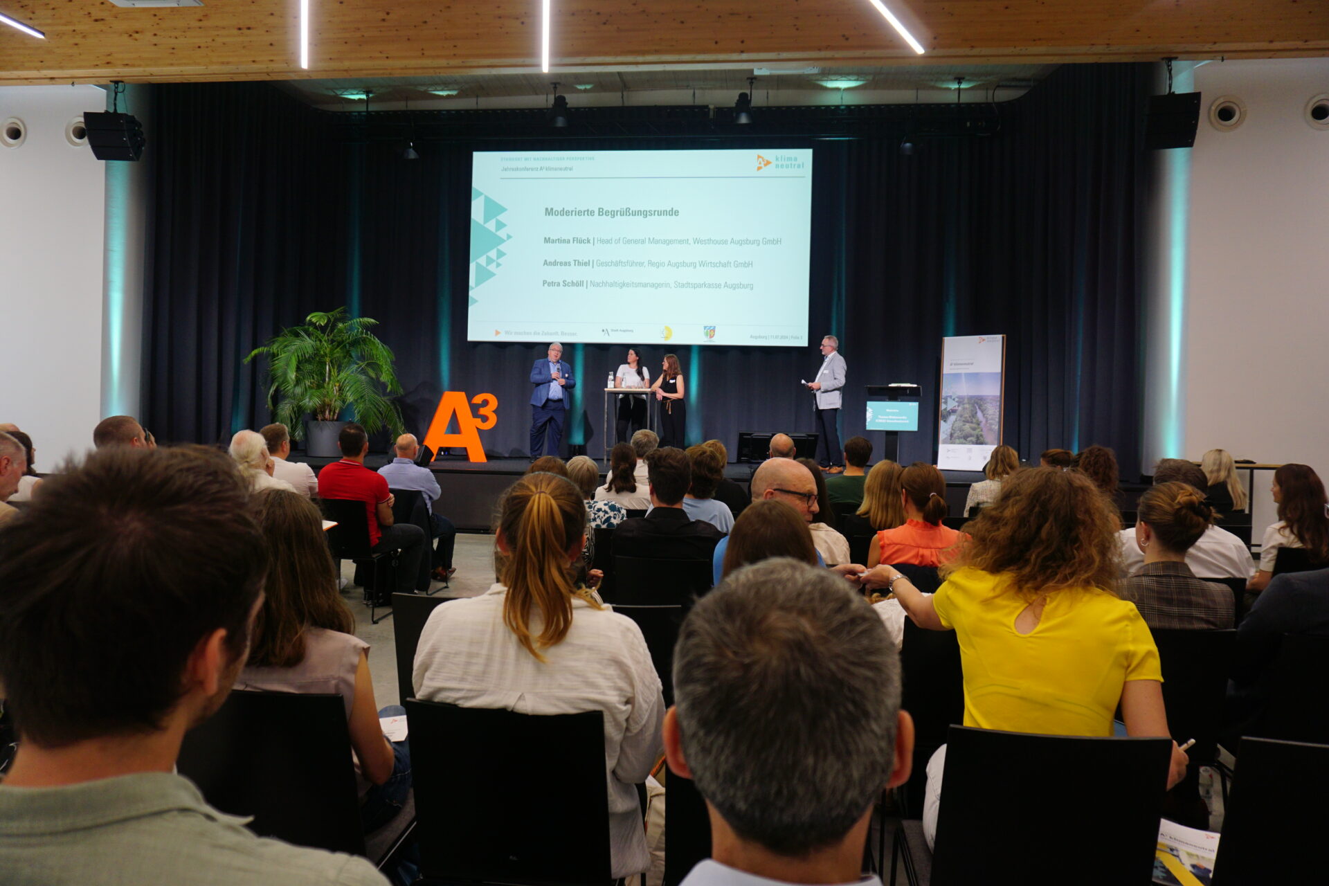 Unter dem Motto „Nachhaltigkeit im Geschäftsmodell verankern“ stand der achte Nachhaltigkeitstag ganz im Zeichen der Frage, wie Unternehmen ihre Geschäftsmodelle zukunftssicher und nachhaltig gestalten können. Im westhouse Augsburg kamen über 100 Teilnehmende zusammen, um sich praxisnah über Lösungen für eine nachhaltige Wirtschaft auszutauschen.