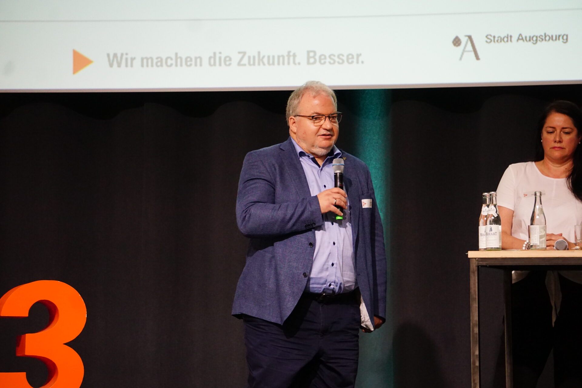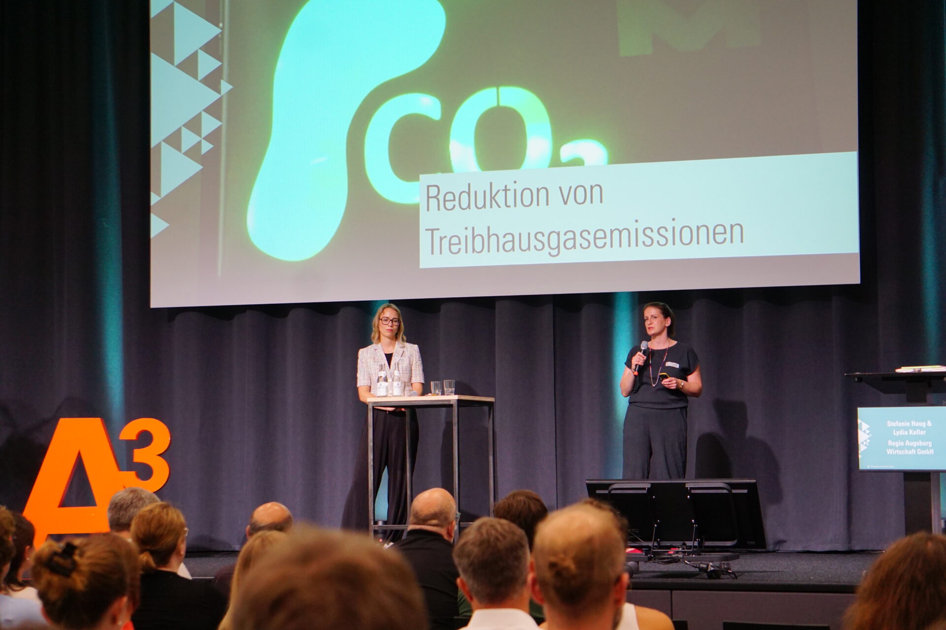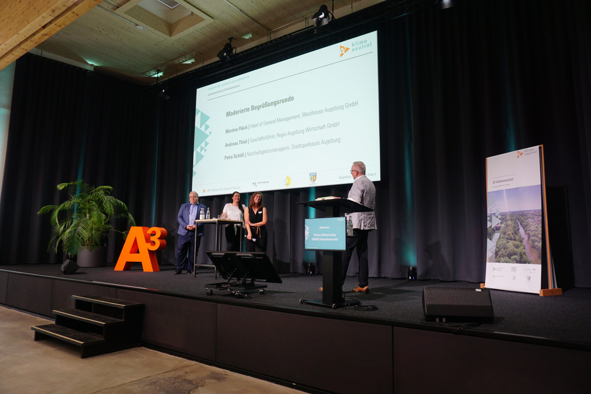 Unter dem Motto „Nachhaltigkeit im Geschäftsmodell verankern“ stand der achte Nachhaltigkeitstag ganz im Zeichen der Frage, wie Unternehmen ihre Geschäftsmodelle zukunftssicher und nachhaltig gestalten können. Im westhouse Augsburg kamen über 100 Teilnehmende zusammen, um sich praxisnah über Lösungen für eine nachhaltige Wirtschaft auszutauschen.