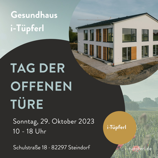 Der Tag der offenen Türe findet am Sonntag, 29. Oktober 2023, von 10 – 18 Uhr statt. Besucher, Therapeuten & Ärzte sind Herzlich eingeladen nach Steindorf zu kommen und das Gesundhaus i-Tüpferl zu erleben! Alle Räumlichkeiten können besichtigt werden und die Therapeuten und Ärzte stellen sich vor.