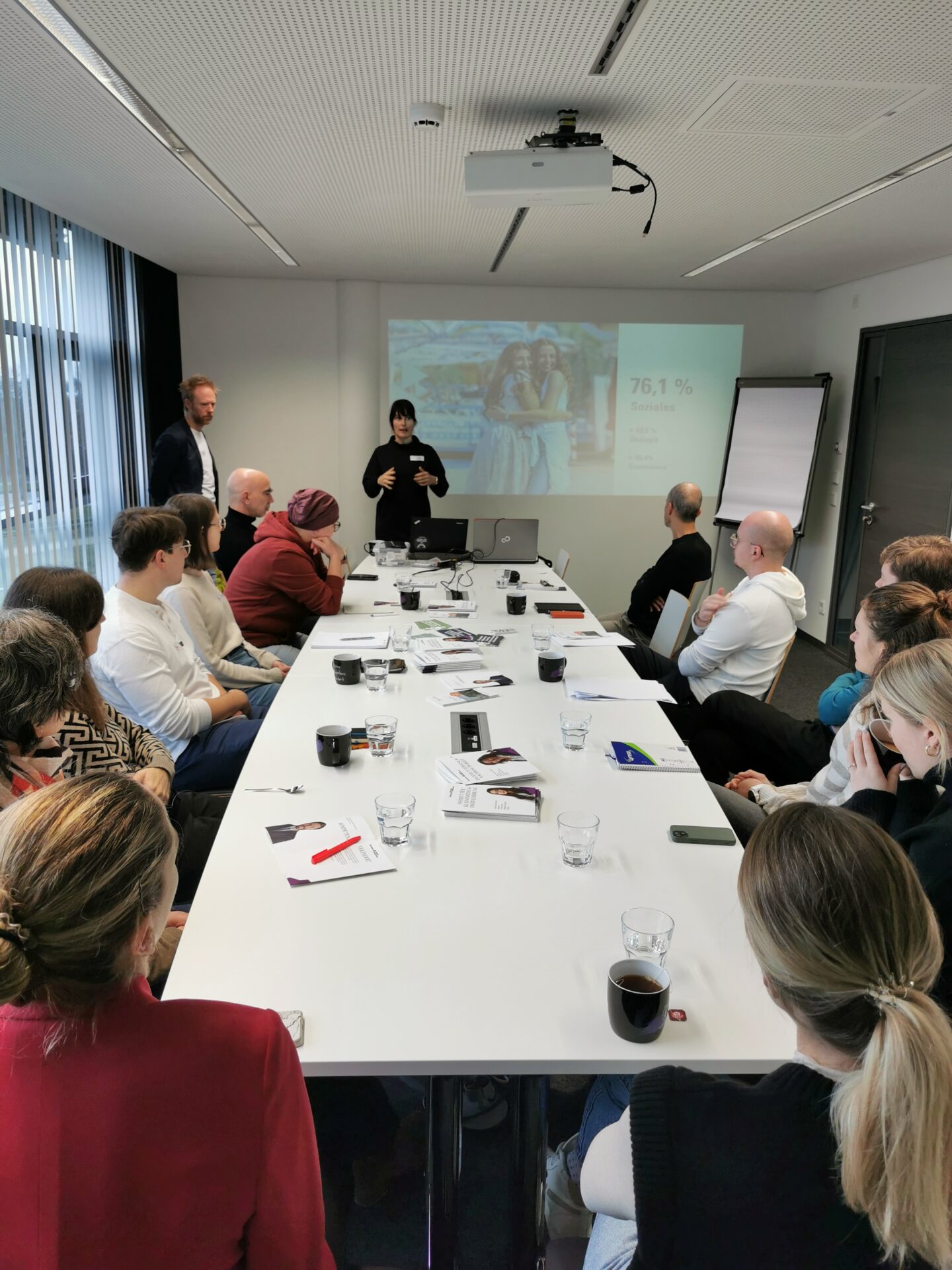 Mit seiner Expertise im Bereich ESG-Transformation und Nachhaltigkeitsberichterstattung bot der Referenten eine Mischung aus theoretischem Input und praktischen Übungen. In Diskussionsrunden und Gruppenarbeiten hatten die Teilnehmenden die Möglichkeit, konkrete Fragen aus ihrem Arbeitsalltag einzubringen und mit dem Experten zu besprechen.