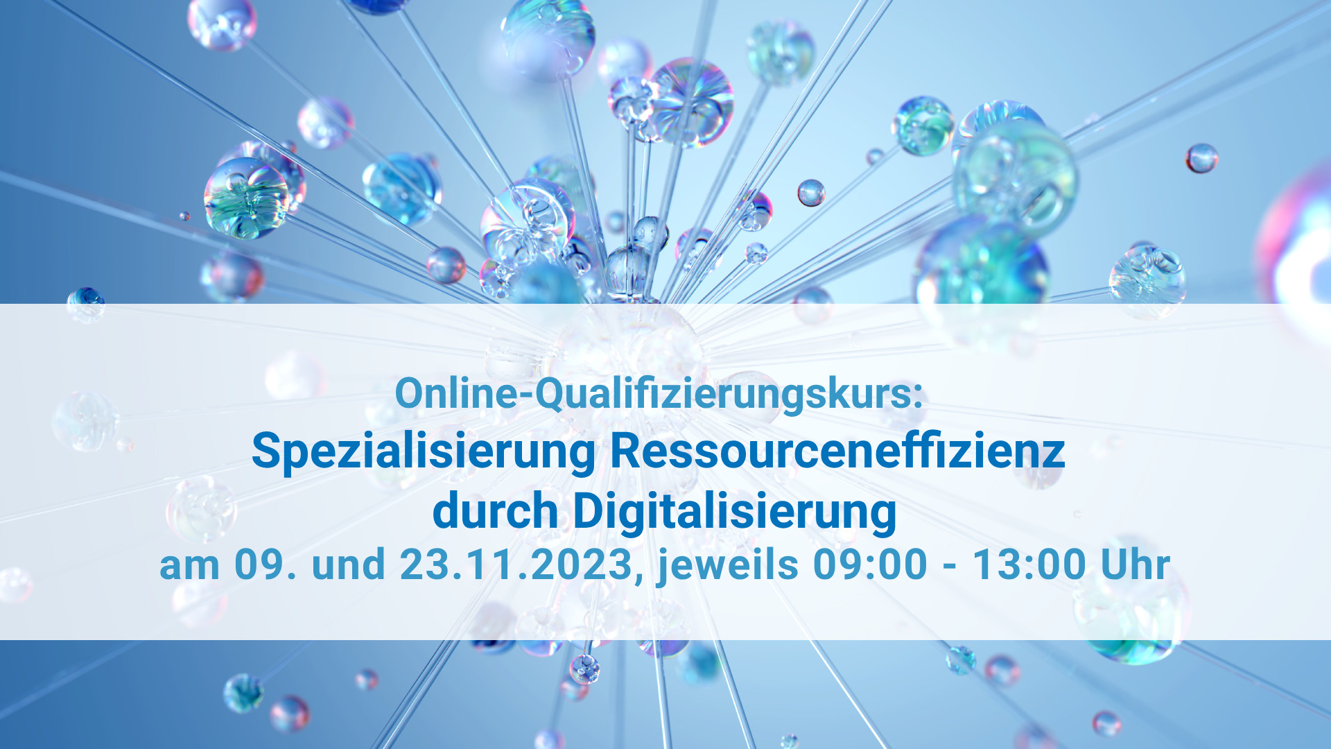 Online-Qualifizierungskurs „Spezialisierung Ressourceneffizienz durch Digitalisierung“ am 09. und 23. November von jeweils 09:00 bis 13:00 Uhr.