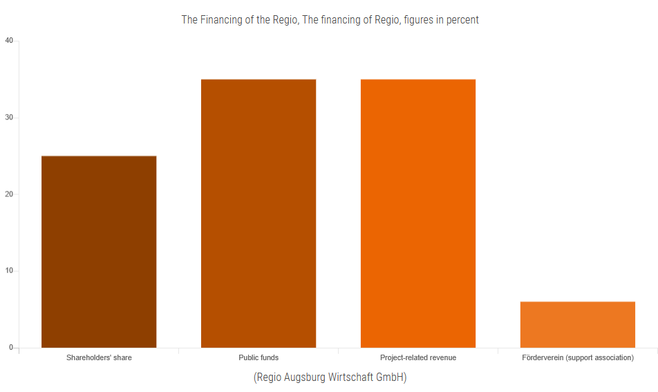 Regio Augsburg Wirtschaft GmbH is 100 per cent publicly owned, specifically by the three shareholders, the city of Augsburg, the district of Augsburg and the district of Aichach-Friedberg. However, the company has a much broader financing structure.