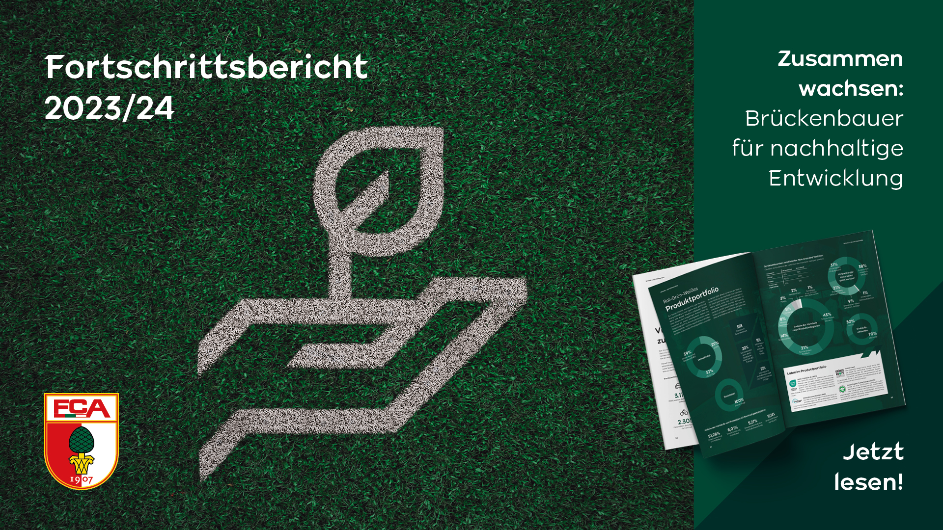 Pünktlich zum Start ins Jahr 2025 hat der FCA unter dem Titel „Zusammen wachsen: Brückenbauer für nachhaltige Entwicklung“ seinen neuen Fortschrittsbericht veröffentlicht. In der vierten und mit 100 Seiten bislang umfangreichsten Ausgabe werden die facettenreichen Nachhaltigkeitsaktivitäten des FC Augsburg ausführlich dargestellt und ein detaillierter Einblick in die Entwicklungen der Saison 2023/24 gegeben. Abschließend wird der Zielerreichungsgrad in den Nachhaltigkeitssäulen analysiert und transparent dargestellt.