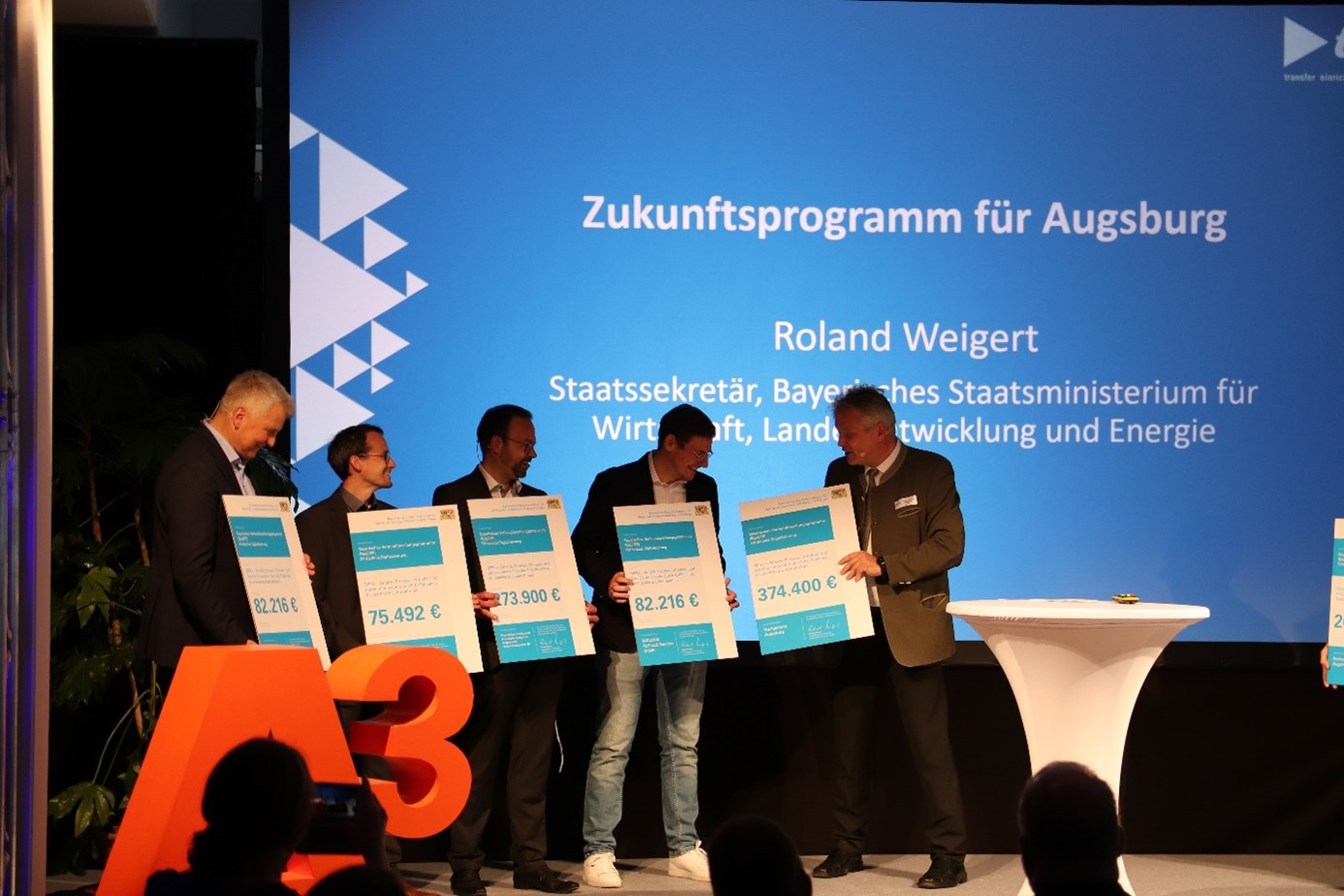 Das Projekt „SPIKe – Smarte Prozess-, Produkt- und Service-Innovation durch KI-Pipelines für etablierte Unternehmen“ wurde im Rahmen des Technologiekongresses Augsburg vom bayerischen Staatsministerium für Wirtschaft, Landesentwicklung und Energie mit einer Förderurkunde ausgezeichnet. Das Verbundforschungsvorhaben erhält eine Förderung von über 888.000 Euro.