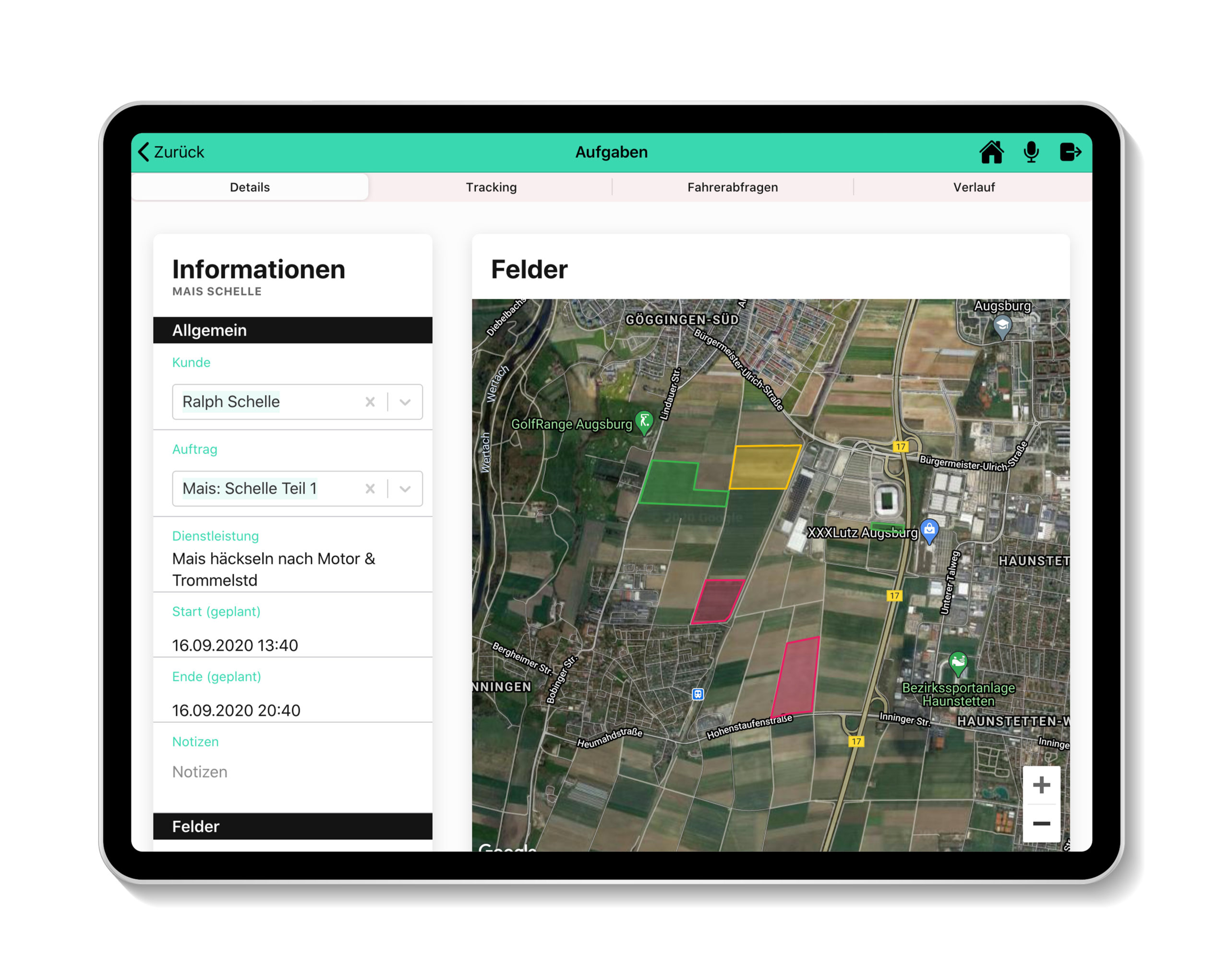 Die FarmAct GmbH mit Sitz in Augsburg hat eine Software entwickelt, mit welcher Lohnunternehmen von der Zettelwirtschaft befreit werden und sich landwirtschaftliche Betriebe besser vernetzen können. Die Gründer und Mitarbeiter des jungen Unternehmens haben damit eine Art mobiles Büro geschaffen, mit dem ein voller Überblick über die gesamten Betriebs-, Auftrags- und Buchhaltungsdaten eines Lohnunternehmens ermöglicht wird. Dadurch werden organisatorische Abläufe, Flächenmanagement und die Kundenkommunikation erleichtert. Dieses System scheint für die Branche enormes Potenzial zu haben, denn über 150 Kunden aus der gesamten DACH-Region setzen bereits auf die Software von FarmAct.