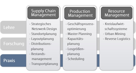 Kernkompetenzen des Lehrstuhls für Production & Supply Chain Management: