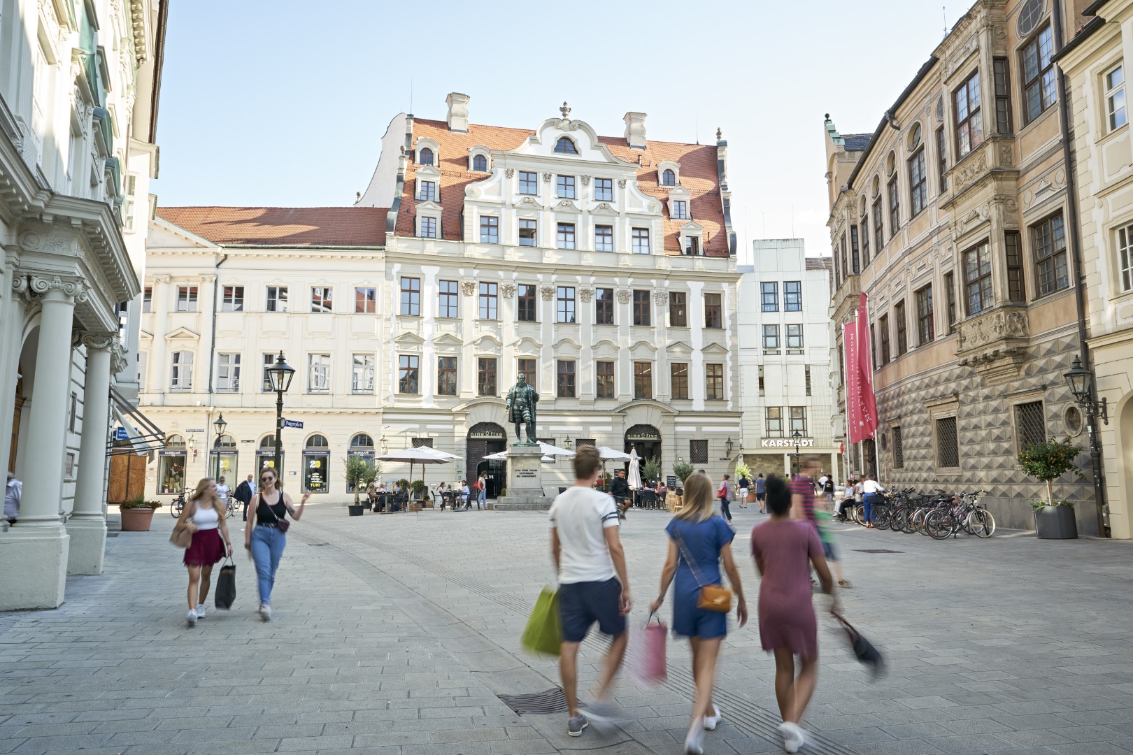 Dass sich auch international erfolgreiche Einzelhandelsunternehmen in Augsburg ansiedeln, zeigt, dass die Stadt weiterhin ein attraktiver Standort für Shopping, Genuss und Erlebnis ist. Nach einem massiven Einsturz des stationären Einzelhandels als Folge der Pandemie und trotz des boomenden Online-Handels zieht es nun wieder mehr Shoppingfreudige in die Innenstadt. Die Passantenfrequenz-Messung zählt regelmäßig mehrere Tausend Besucher an Samstagen, wie die hystreet.com GmbH in ihren Erhebungen feststellte. Auch die geringe Leerstandsquote von drei Prozent bei der Erdgeschossnutzung in der Kern-Innenstadt deutet auf eine Erholung des stationären Einzelhandels hin. Im bundesdeutschen Vergleich schneidet Augsburg damit sehr gut ab. Bester Beweis für die nach wie vor große Bedeutung des stationären Handels ist die Eröffnung von Geschäften von online-pure-playern wie „Sportkind“, die ihre Ware ausschließlich online zum Verkauf anbieten. „Sportkind“ verkauft ihre exklusive Sportbekleidung nun auch im Verwaltungsgebäude am Rathausplatz. Von den attraktiven Einkaufsmöglichkeiten profitieren neben Augsburgern auch Menschen aus der gesamten Region sowie aus den angrenzenden Landkreisen.
