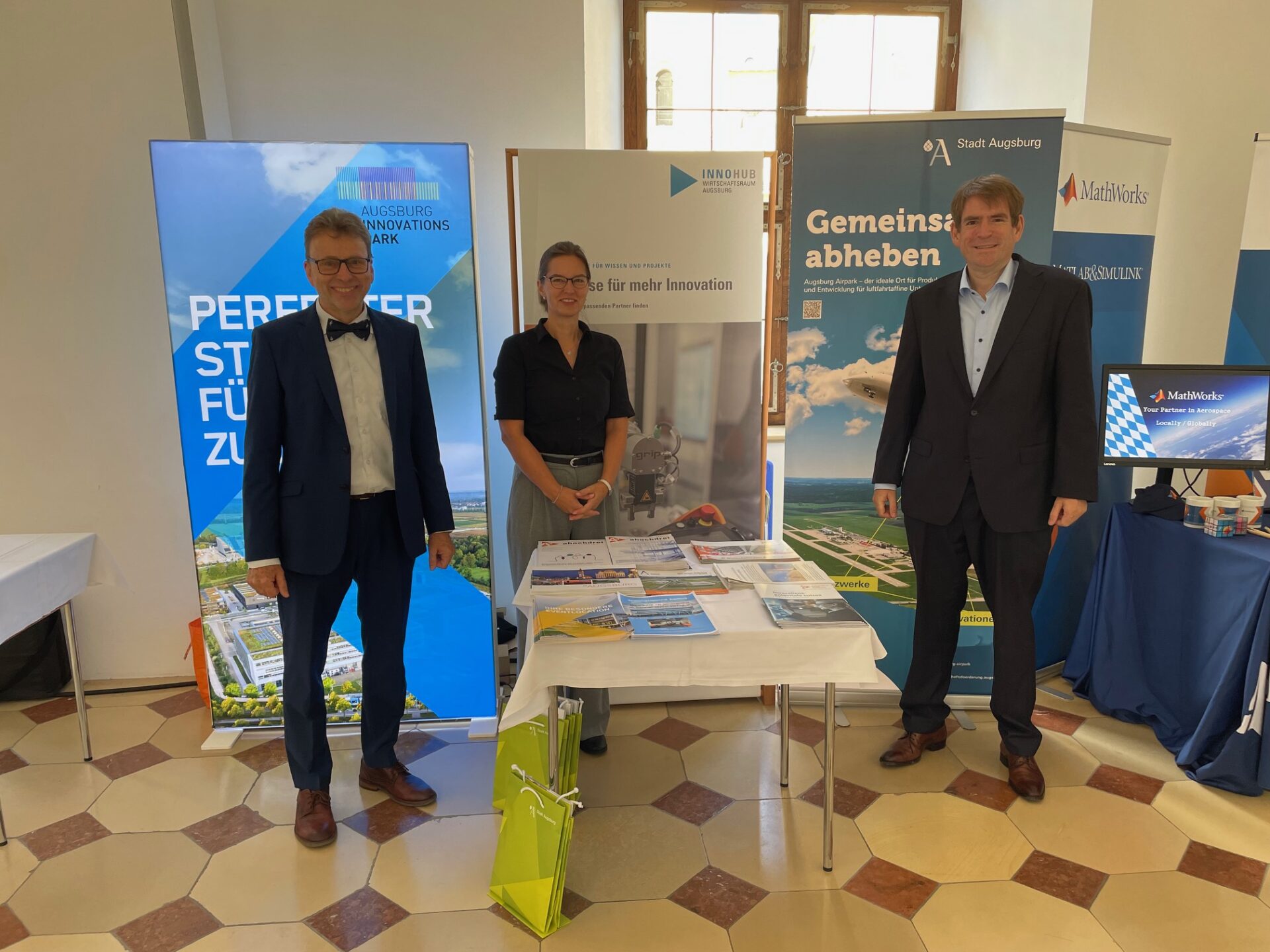 Am Stand der Region Augsburg nutzte unter anderem Wolfgang Hehl, Geschäftsführer der Augsburg Innovationspark GmbH, die Gelegenheit, um sich mit Bayerns Wirtschaftsminister Hubert Aiwanger über die Perspektiven der Branche sowie Potentiale der Region Augsburg auszutauschen.