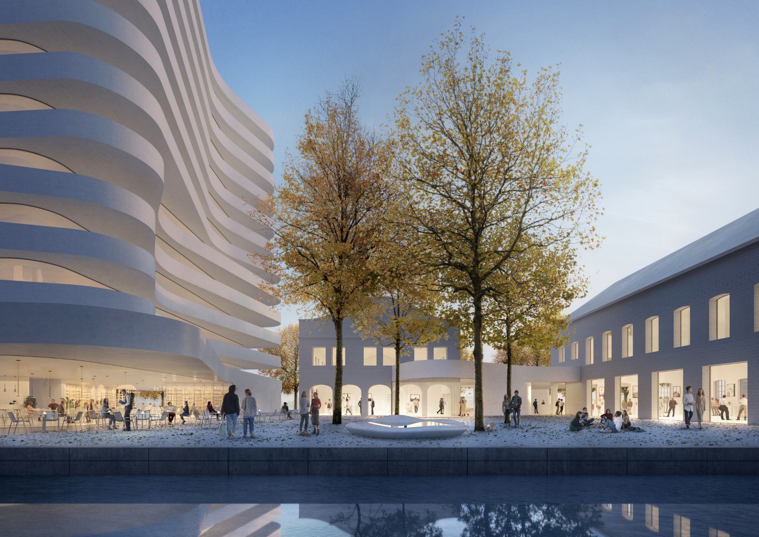 Der Wohnturm soll als Landmarke über das Ensemble hinaus wirken. Er setzt auf hochwertige, moderne Wohnnutzungen. Charakteristisch sind die geschwungenen Terrassen, die großzügige Freiflächen bieten und auch Schatten spenden. Alle Bauten bieten ein hohes Maß an Flexibilität – eine Qualität, die schon die Industrie-Architektur auszeichnete und heute umso aktueller ist. Primäres Ziel war eine wirtschaftliche Lösung bei gleichzeitig größter Flexibilität und Langlebigkeit der Bauteile. Für Nachhaltigkeit im Sinne von Langlebigkeit sorgen der Massivbau, die kompakte thermische Hülle und Reduktion der Wartungsintensität. Die Pläne stammen von der Baumschlager Eberle Architekten GmbH.