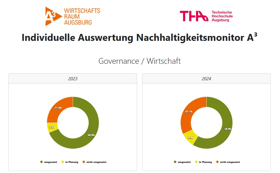 Die erste Umfrage startete im Oktober 2023 und lief bis Anfang Februar dieses Jahres. In dieser Erhebung wurden Daten zu den Nachhaltigkeitsaktivitäten und -strategien der Unternehmen und Organisationen aus dem Wirtschaftsraum Augsburg gesammelt. Für dieses „Nachhaltigkeitsmonitoring“ hat die Technische Hochschule Augsburg 206 Aspekte in den Dimensionen Ökologie, Soziales und Governance (Unternehmensführung) ermittelt und in einer Umfrage zusammengefasst. 125 Antworten sind in die Auswertung eingeflossen. Die Ergebnisse des ersten Umfragezyklus zeigen, dass Nachhaltigkeit ein vielschichtiges Thema ist, das weit über bloße Schlagwörter hinausgeht.