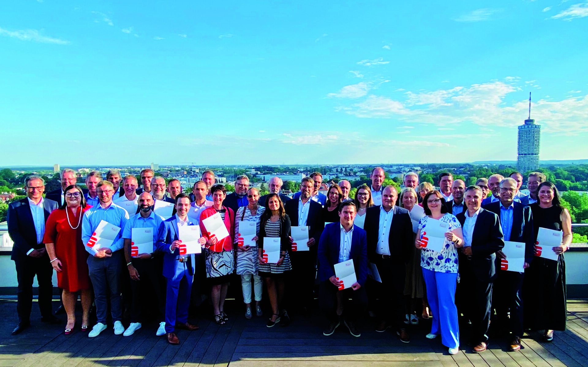 Vorstandsvorsitzende Sandra Peetz-Rauch und Vorstandsmitglied Wolfgang Tinzmann würdigten die Leistung der Teilnehmenden bei einer feierlichen Zertifikatsübergabe und betonten das Engagement und die Motivation der Mitarbeitenden, ihre Kundschaft kompetent zu begleiten.