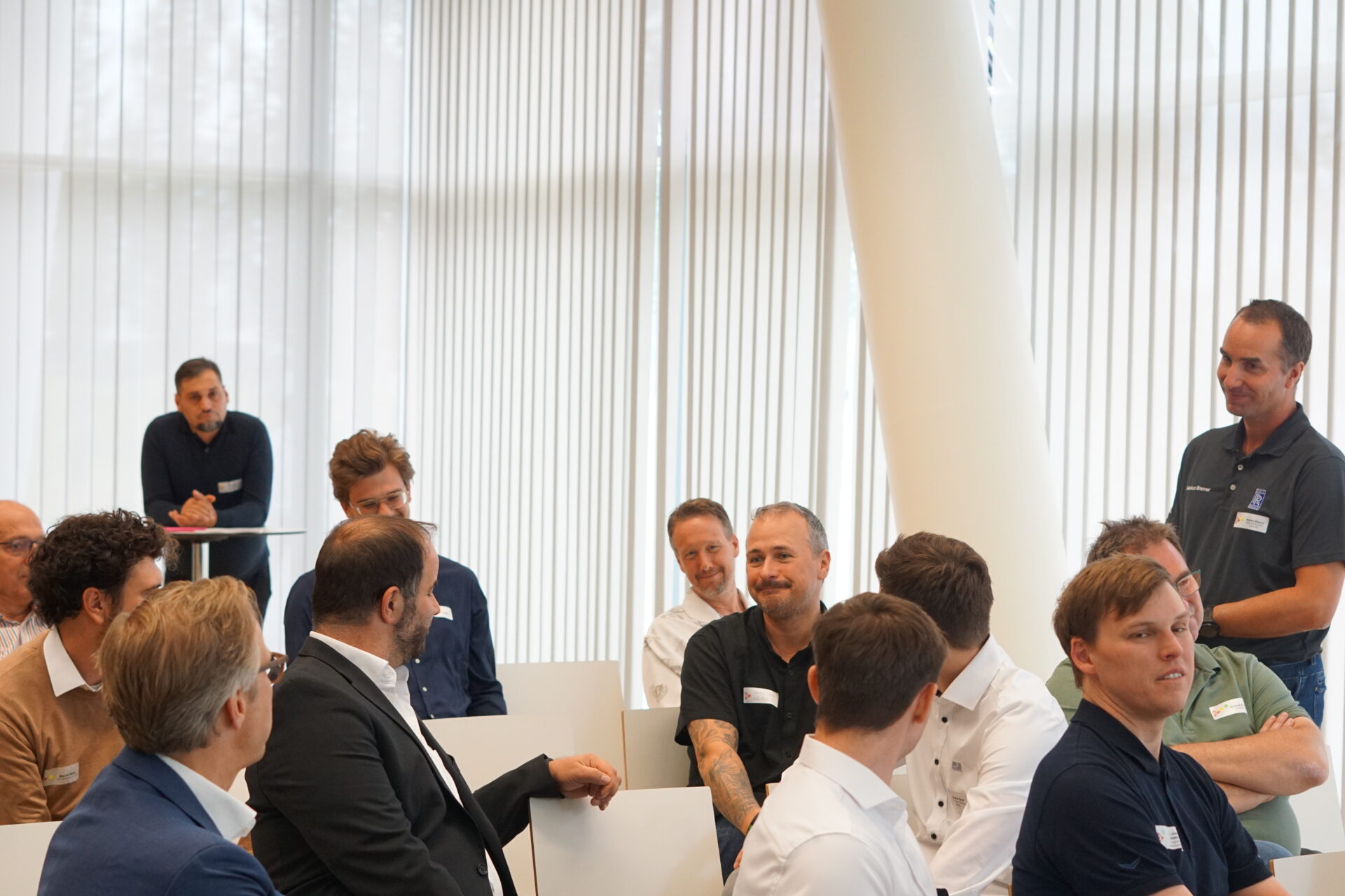 Die Mittagspause bot anschließend reichlich Zeit für Vernetzung. Dank farblicher Markierungen auf den Namensschildern konnten Wasserstoffanbieter, Industrieanwender, Forschung und Technologieanbieter zusammenfinden und gezielt in einen engeren Austausch kommen.