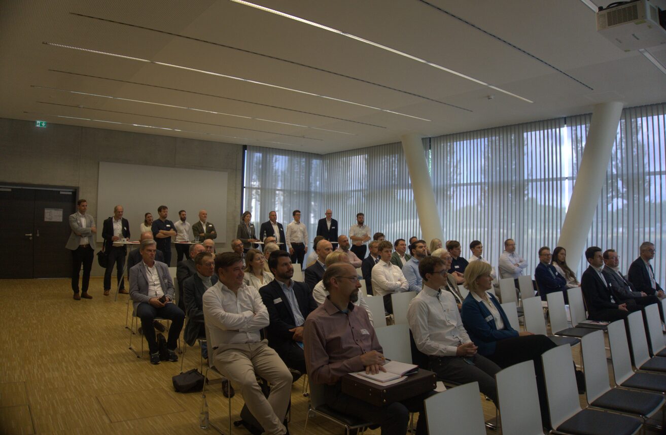 Abgerundet wurde das Vormittagsprogramm durch Dr. Nico Riemann von der Bayerischen Forschungsallianz (BayFOR). Dieser gab einen Überblick über aktuelle EU-Fördermöglichkeiten im Rahmen der „Clean Hydrogen Partnership“. Die vorgestellten Programme bieten insbesondere KMU, Hochschulen und Industriepartnern attraktive Förderquoten für Wasserstoff-Forschung und -Anwendung – bis hin zur Unterstützung bei Projektanträgen, Partnervermittlung und Budgetierung. Die BayFOR steht dabei als Ansprechpartner für interessierte Unternehmen aus Bayern zur Verfügung