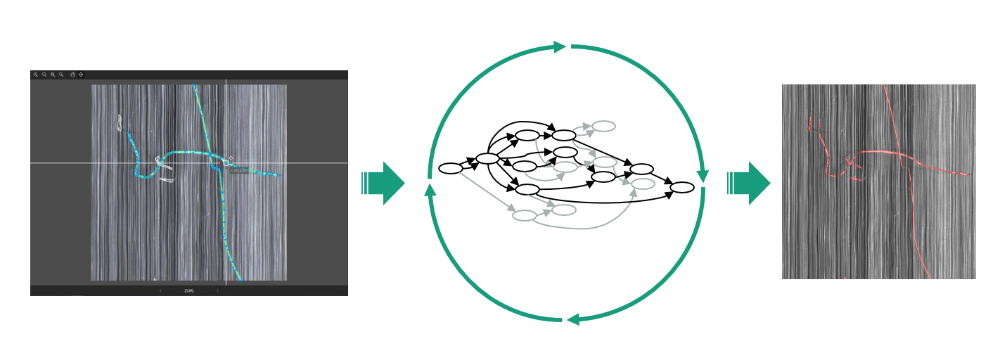 Im Rahmen verschiedener Projekte wurde eine Lösung entwickelt, um kleinste Defekte auf Bauteilen zuverlässig zu detektieren, die für das Auge kaum sichtbar sind. Durch den Einsatz hochauflösender Kameras ist es möglich, Bandwaren im laufenden Betrieb zu scannen und dabei Anomalien zu erkennen und darzustellen. Das Prinzip wurde am Beispiel der Inline-Prüfung von Carbonfasern erfolgreich demonstriert. Das Online-Monitoring-System ermöglicht eine präzise Kontrolle der Produktqualität entlang der gesamten Wertschöpfungskette. Es zeichnet sich durch seine hohe Auflösung und die Fähigkeit aus, auch in einem beweglichen Umfeld eine zuverlässige Defekterkennung zu gewährleisten. Die Bildverarbeitung erfolgt in Echtzeit und wird mit KI-Verfahren kombiniert, um eine automatisierte Auswertung der Prüfdaten zu ermöglichen. Durch die Erkennung von Anomalien in frühen Phasen des Herstellprozesses wird die Prozessstabilität deutlich erhöht. Darüber hinaus eröffnet sie neue Möglichkeiten für die Anwendung im Bereich des kontinuierlichen Bandwaren-Monitorings.