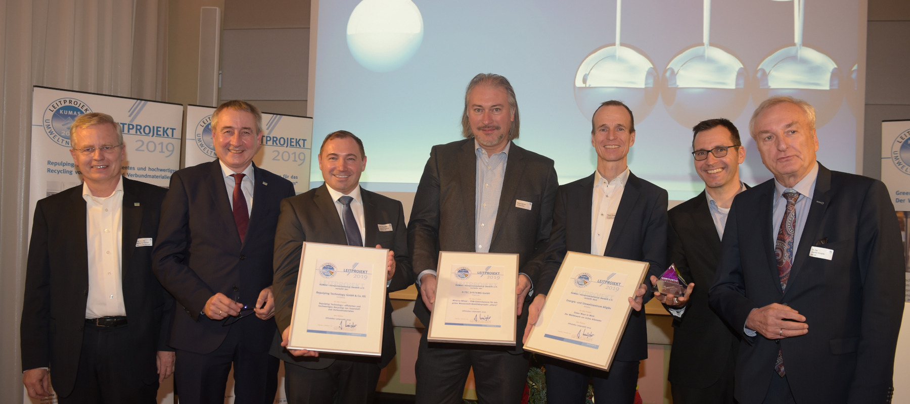 Die Repulping Technology GmbH & Co. KG präsentierte mit ihrem Projekt „Repulping Technology – effizientes und hochwertiges Recycling von Faserstoff und Verbundmaterialien“ ein neuartiges Verfahren, mit dem Verbundstoffe auf Faserstoffbasis, nassfeste Papierprodukte und etikettierte Kunststoffe sehr effizient und einfach in ihre Bestandteile getrennt und in den Recyclingkreislauf zurück geführt werden können.