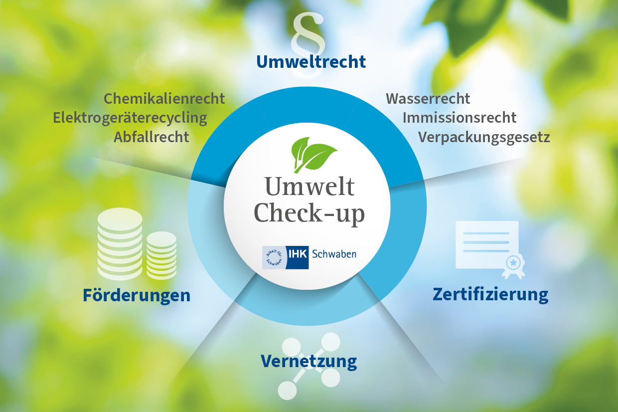 Die IHK Schwaben klärt Sie im Rahmen einer kostenfreien und individuellen Sprechstunde über Ihre Pflichten und Möglichkeiten auf, die sich aus den nationalen und europäischen Regelungen des Umweltrechts ergeben.