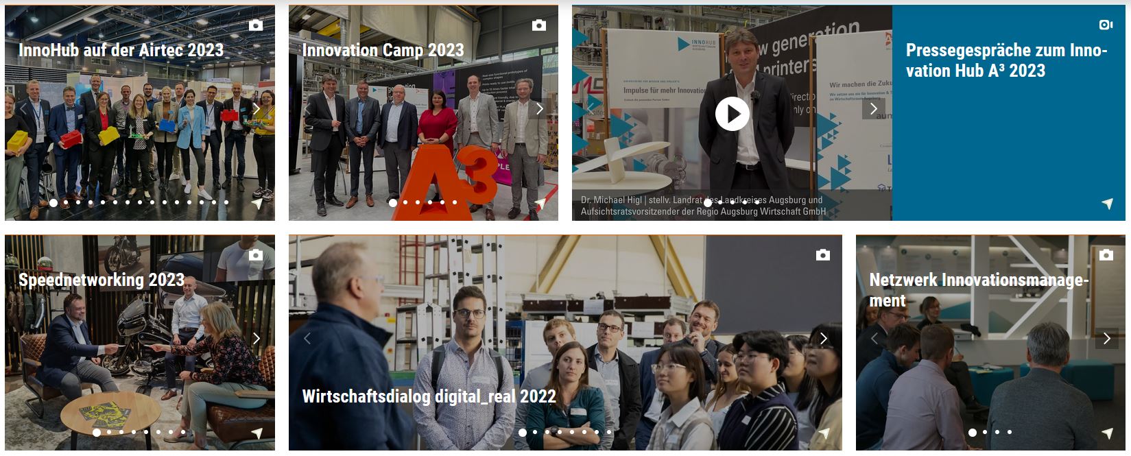 - Wir stärken das Innovationsökosystem im Wirtschaftsraum Augsburg gemeinsam mit 22 Institutionen in der von A³ 2021 gegründeten Initiative "Innovation Hub A³.