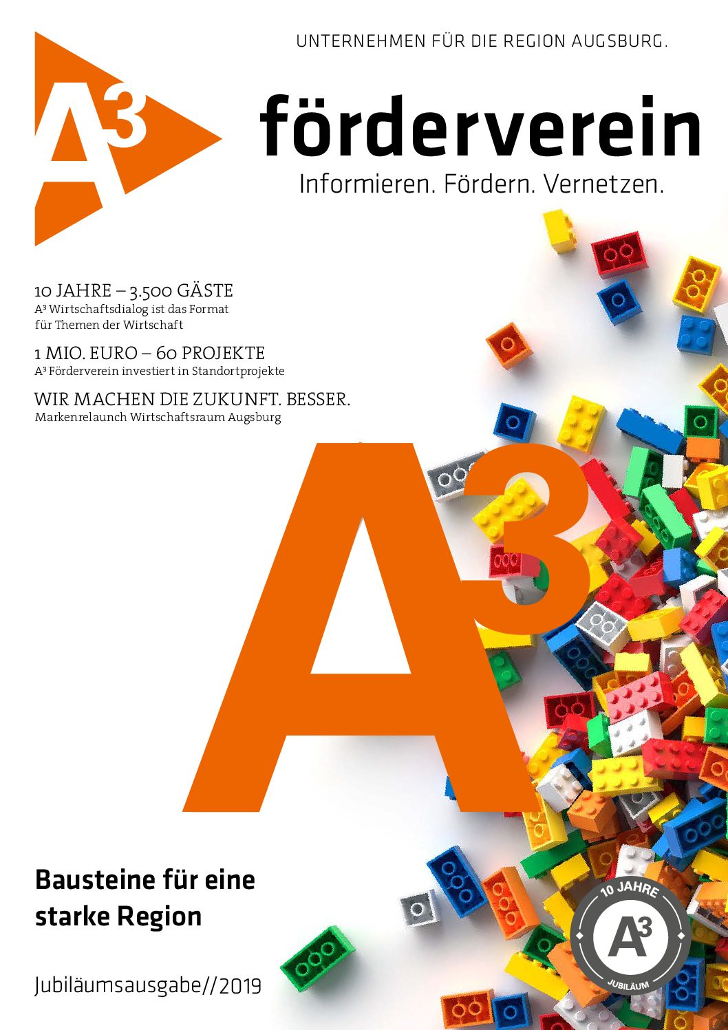 Das Magazin als Sonderausgabe zum 10-jährigen Bestehen, welches der A³ Förderverein 2019 mit einem großen Festakt feiern durfte. Wir zeigen, was der A³ Förderverein gemeinsam mit der Regio Augsburg Wirtschaft GmbH und weiteren Partnern schon alles geleistet hat.