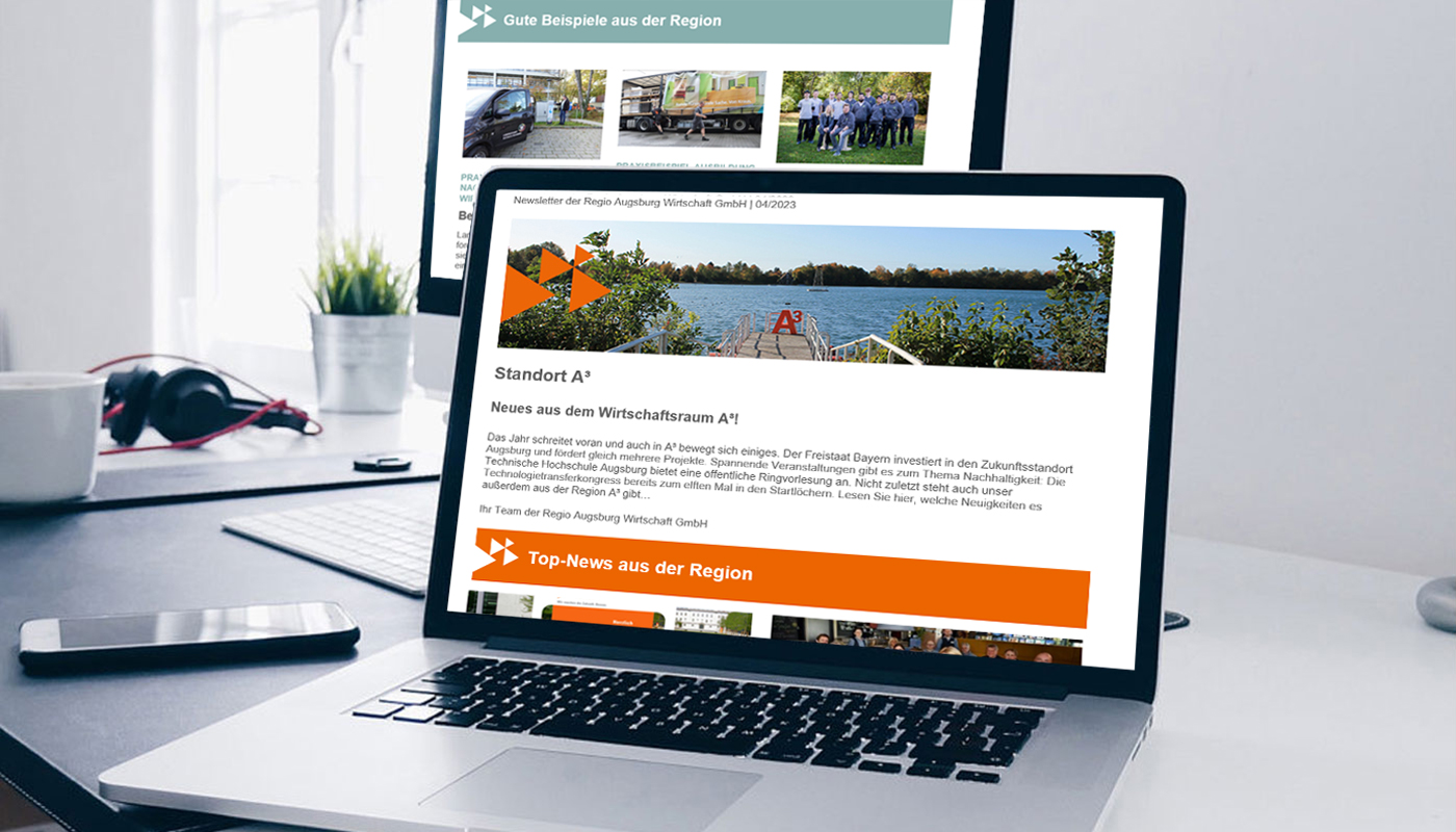 Sie möchten zu den Aktivitäten der Regio Augsbug Wirtschaft GmbH und mit aktuellen Wirtschaftsnachrichten aus der Region A³ auf dem Laufenden bleiben? Mit unseren E-Mail-Newslettern sind Sie immer up to date. Auch werblich können Sie unseren Newsletter für Anzeigenbanner nutzen.
