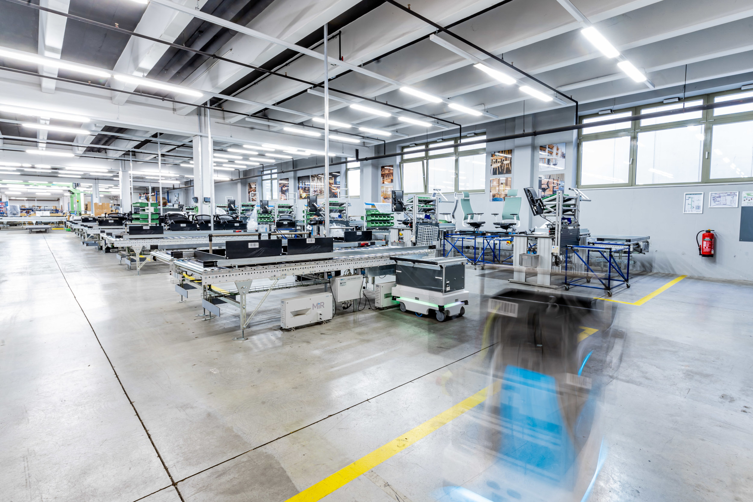Rund 10.000 Stühle werden jeden Tag in den Produktionshallen von TOPSTAR™ hergestellt. Neben den Mitarbeitenden bewegen sich in den Gängen auch kleine Roboterfahrzeuge. Sie übernehmen Aufgaben des internen Transports und der Produktionslogik. Dabei fahren sie vollkommen autonom, sind lernfähig und kommunizieren per WLAN. Auch begrüßen sie schon einmal Besucher über ihr Sprachmodul. Eines wird deutlich: Digitalisierung ist hier schon lange keine Zukunftsmusik mehr. Bereits seit 2017 hat das Unternehmen die smarten Helfer im Haus. Sie sind Teil der neuen, hochmodernen Produktionslinien, welche die wohl ersten echtzeitgesteuerten Produktionslinien für Sitzmöbel in ganz Europa sind. Über 15 Jahre Engagement in der wissenschaftlichen Forschung zahlen sich also aus: Neueste Industrie 4.0-Technologien konnten erfolgreich in die eigene Produktion integriert werden. Im nächsten Schritt planen die Geschäftsführer, die digitalen Techniken auf alle Produktionsbereiche zu übertragen.